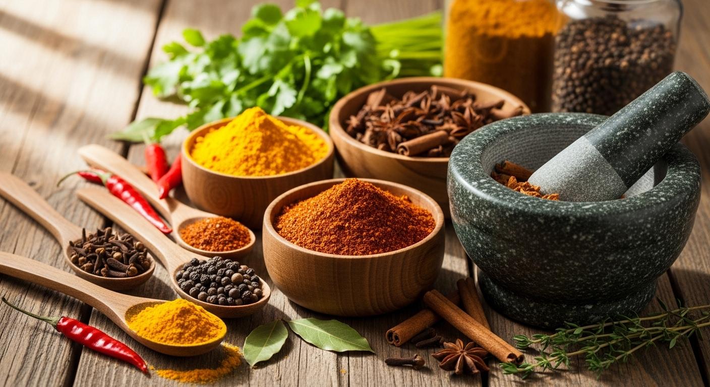| Épices médicinales | Curcuma, clous de girofle | Terreux, aromatique | Riz, potages, infusions |